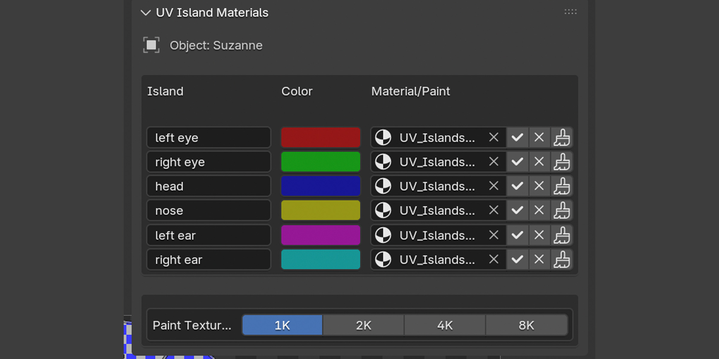 - Precise Texture Painting: Generate textures for chosen islands with auto-generated stencil masks to keep painting clean. Switch to texture paint mode and start creating effortlessly.